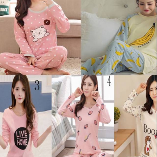 Baju Tidur Piyama Lengan Pendek Celana Panjang 100 Import Bahan Katun Polyester Korea Bukalapak Com Inkuiri Com