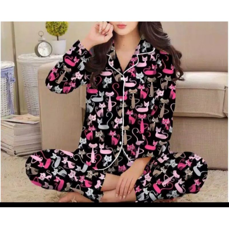 Baju Tidur Piyama Gambar Kucing Untuk Perempuan Shopee Indonesia